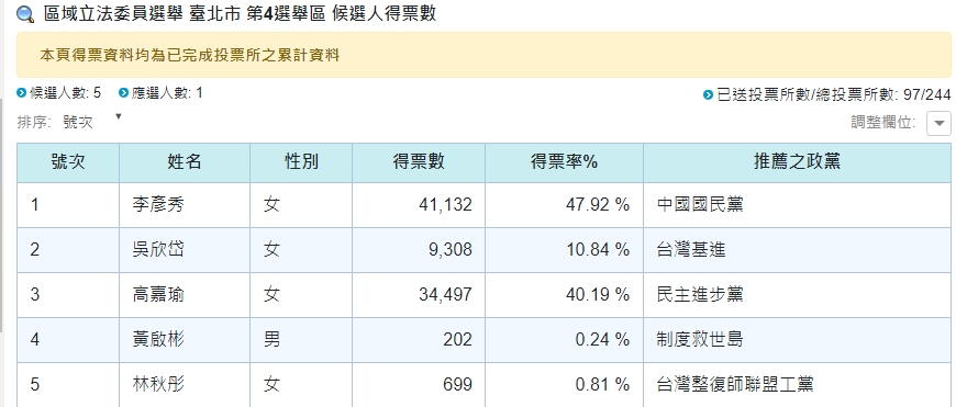YiJane: 在台中第四選區 張廖選輸真的下巴掉下來 01/13 21:03