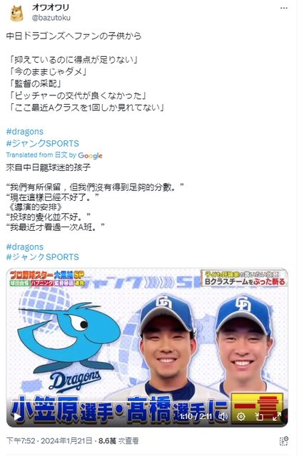 談話節目街訪中日小球迷 問中日戰績低迷原因在哪 小朋友:"監督的指揮" 笑死~~
