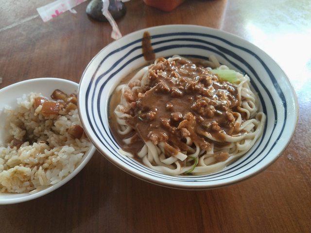 有些店家會把麻醬麵上面淋肉燥
