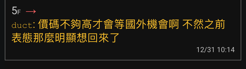 → duct: 想要五年是張自己講的又不是我說的 02/20 23:13