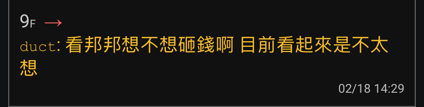 → duct: 沒誠意確定是我說的嗎XD 02/20 23:15