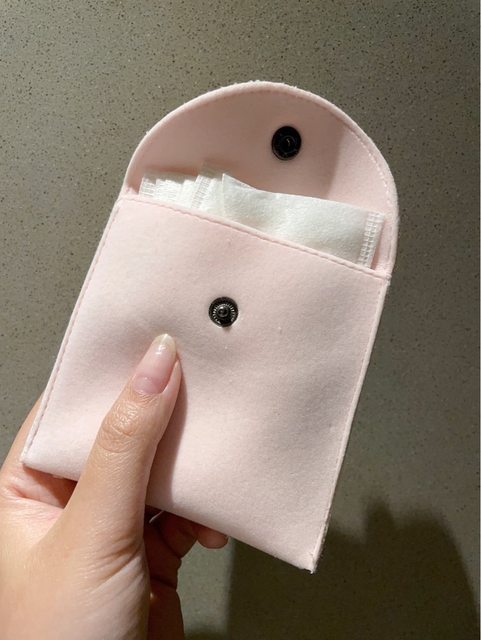 小粉包就會帶化妝棉們,晚上會再用化妝水清潔一次,用小包裝著也比較乾淨衛生