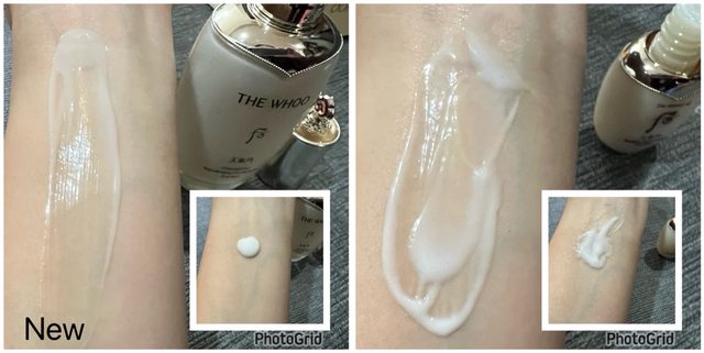但新版抹開會更明顯轉成水狀質地,相較之下更快就吸收