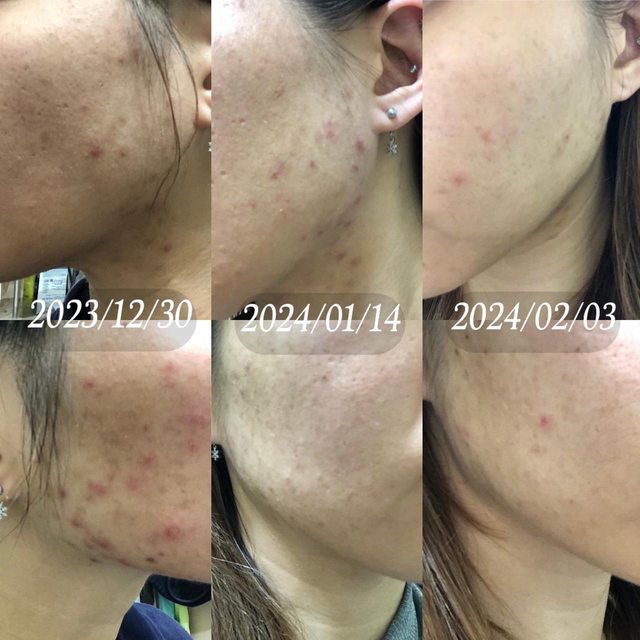 原本臉頰都是紅腫的痘痘,現在幾乎都消了...只剩下一些閉鎖粉刺的部分
