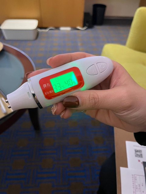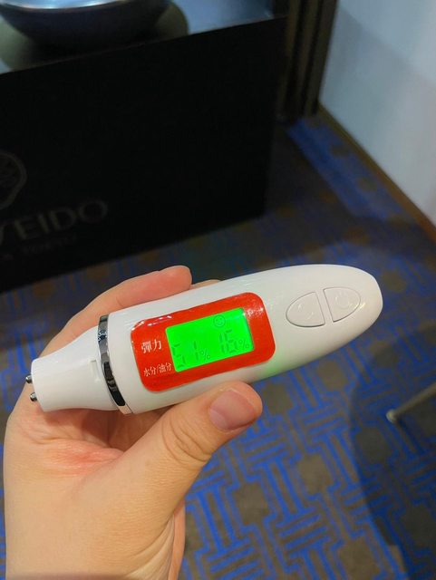 然後用儀器檢測一下臉部的水份跟油份