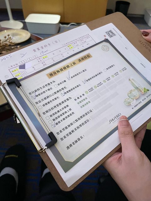 報到後服務人員會先簡單詢問肌膚狀況