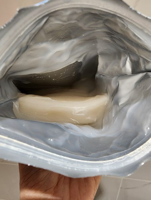 話,這款可能會太刺鼻~面膜的材質是有凹凹凸凸的顆粒感,滿有份量感的,敷完八分鐘還