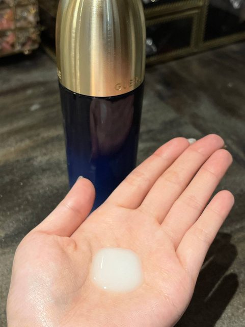 蘭鑽精華露屬於抗老化妝水,質地是清透乳狀,很快就能吸收,完全不黏膩