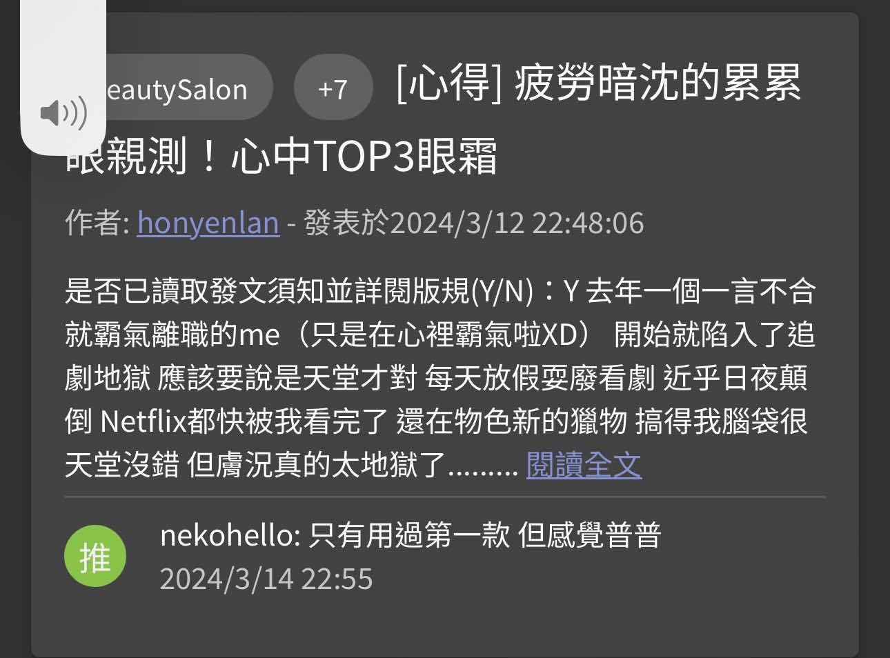 → flyaway1030: 然後眼霜那篇文章 結果不是欸 218.35.134.193 05/20 23:51