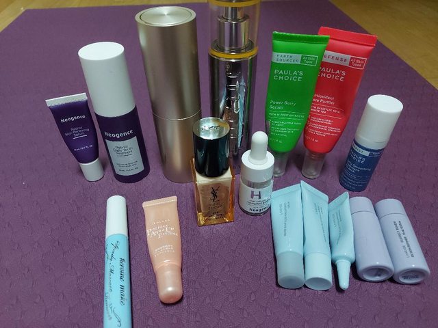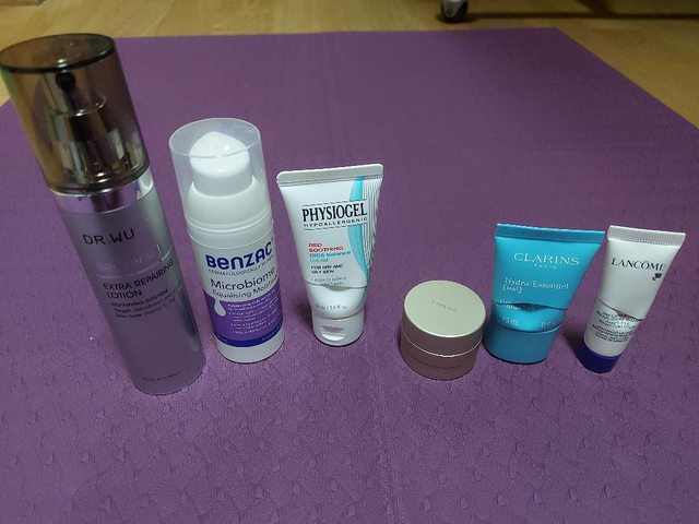 右下那些藍紫色小樣都是蘭芝的,我覺得不值一提XD 藍色的是基礎保濕系列,紫色的是賦