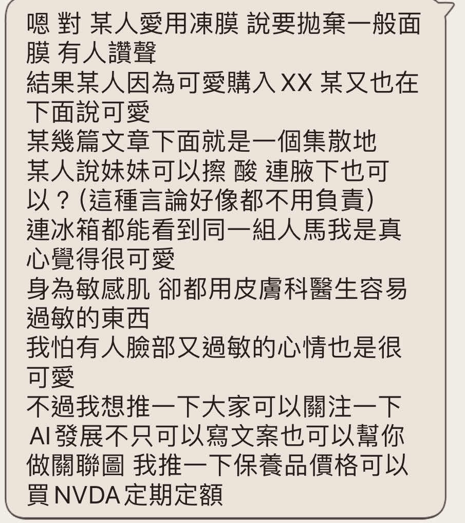 → fantasia5100: 面膜我現在是真的比較少用,幾乎都 180.217.6.10 06/16 22:31