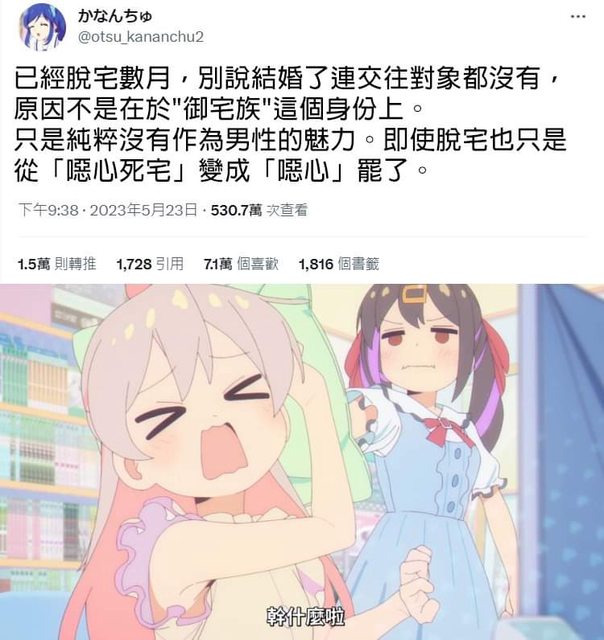 推 newtypeL9 : 我身邊有動漫興趣的大多正常交往結婚 05/31 10:39