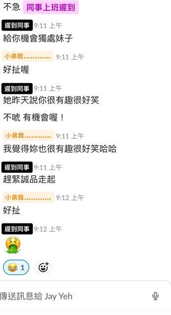 隔天我和遲到男同事就有以下對話