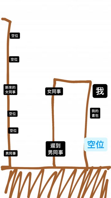 遲到男「下週會再來兩個實習生,感覺要換座位就要趁現在,之後可能就固定了。」
