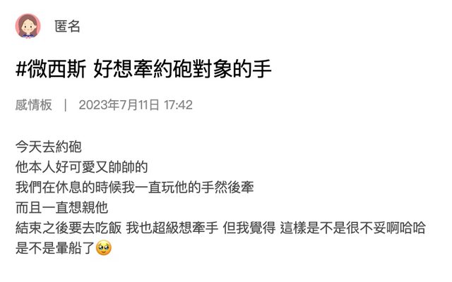 -- ※ 發信站: 批踢踢實業坊(www.ptt.org.tw), 來自: 39.10.39.3 (臺灣) ※ 文章網址: https://www.ptt.org.tw/Boy-Girl/M.1689302146.A.2AB