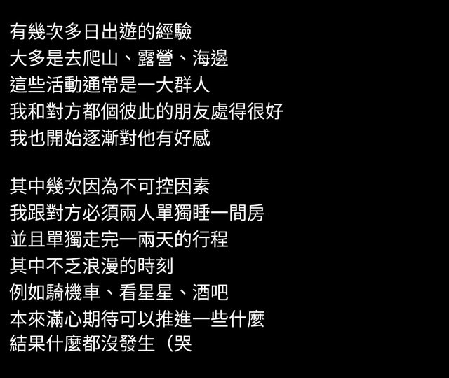 : 完全沒有任何動作被靠北男生木訥,說期待推進卻什麼都沒有發生。