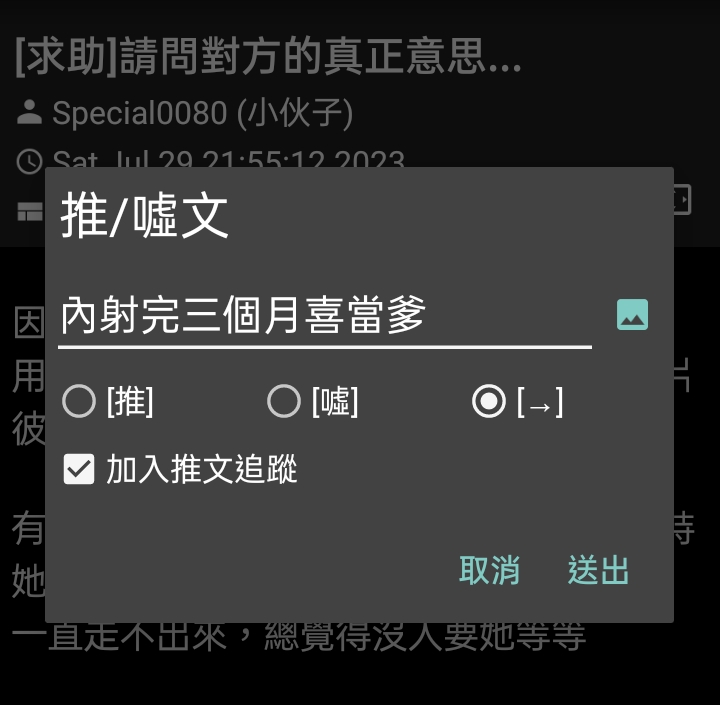 c1510c : 卡個後續 看起來是對方也有好感 07/30 13:34