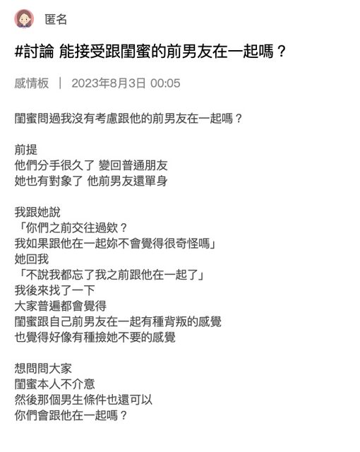 → loveisth520 : 三個人都是同個朋友圈 後來鬧得很難看 08/04 11:15