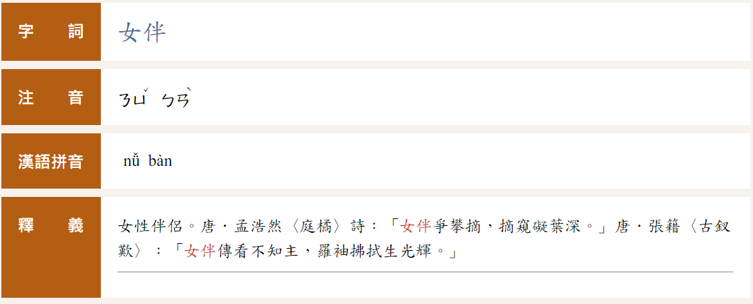 推 darkdust : 女伴本意就是女性陪同出席的夥伴,但是延伸來使用一 08/09 00:19