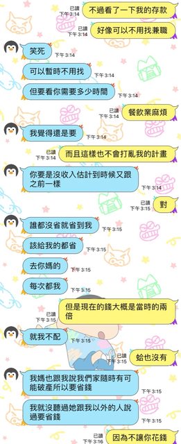 : 女友20還在讀書 家裡沒給錢 平常會打工每天兩三小左右