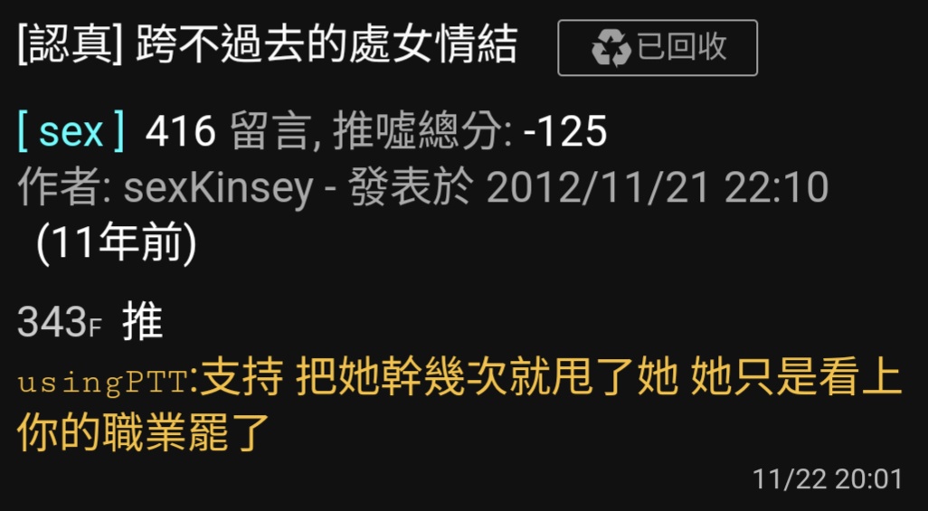 → etiennechiu : 會喜歡,即使宅女也一樣,只能找外配並且降低學歷 07/06 01:27