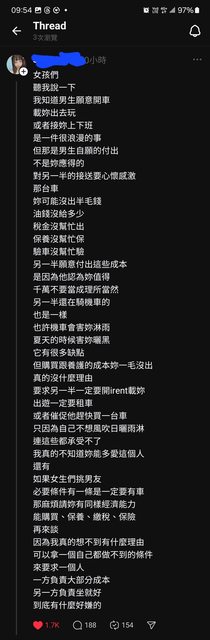 kevinmade : 樓上那個很正常吧 如果跟男生交往也AA坐機車 那就 07/31 12:44
