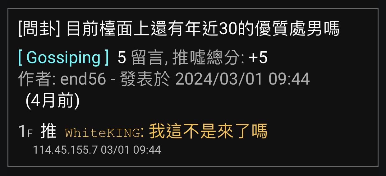 den95279889 : 好了啦 不合你意就魯蛇男哦Zzz 07/29 00:21