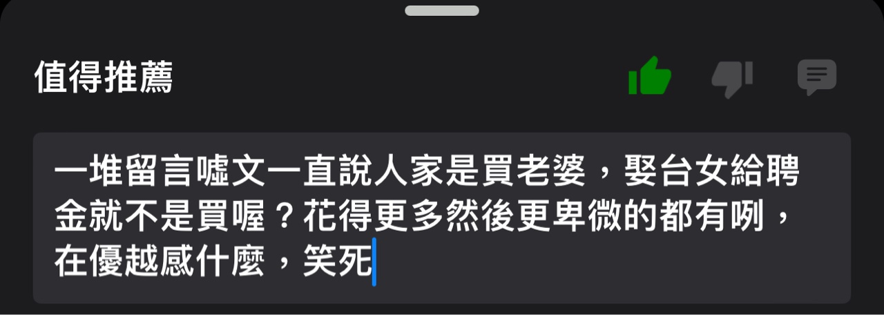 推 smoker1225 : 其實我覺得不管是外籍透過婚姻仲介,或是台灣女方要 08/03 17:03