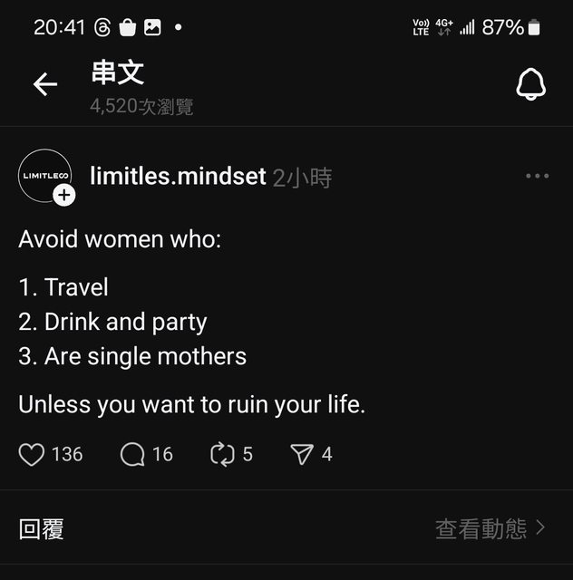 → icelaw : 這種人通常也是很女權主義的支持者,所以直接pass 10/22 15:17