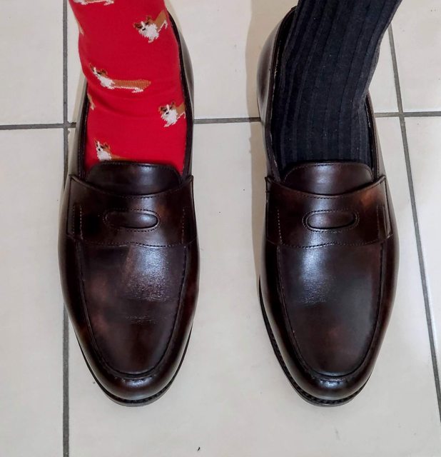 後上腳比較一下風格,以樂福鞋來做穿搭,我個人只穿長襪,不會穿短襪,因為不太喜歡
