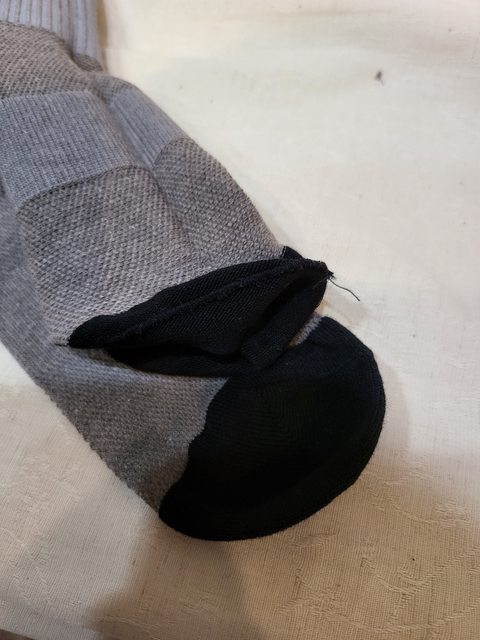 腳趾的部分要再縫製收邊,這部分可以機器或是手工,手工的優點為平整的龍骨,用手觸
