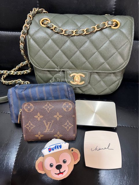 居然放的下chanel拉鍊長夾(但拿取不易,建議不要放長夾,中夾很ok)