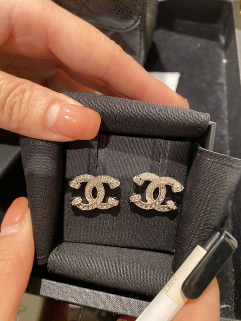 在等待結帳的時候,SA聽到我想看耳環,拿出剛到貨的銀色logo耳環,跟CF黑銀牛很搭,我就一起打包帶走囉。