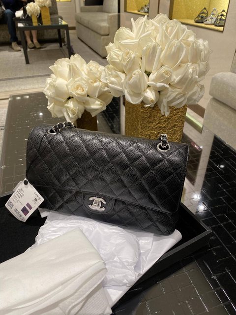 後來我看到展示櫃有2.55,試背了2.55 25覺得太大,SA拿出2.55 23,還有CF25黑銀牛,魚子醬牛皮看起來好耐用。