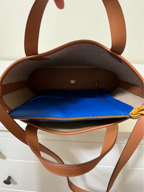 搭配肩帶就變身成可隨身背出門的小包,感覺有點像LOEWE的Flamenco,質感也是很不錯