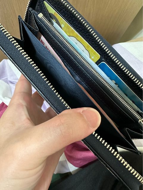 卡片放的還算順暢不會很難放,整體長夾空間很夠放起來也不會很侷促~