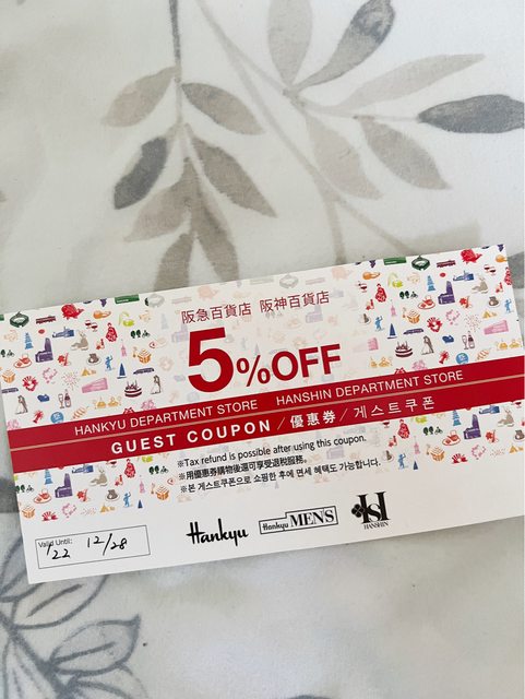 推 mtcoat: 阪急的5%劵某些櫃上有也可以去退稅櫃台或是服務台用護照領 02/15 13:05