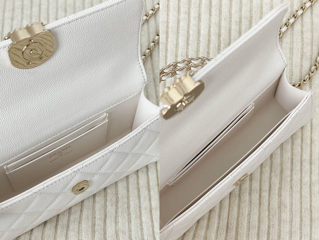 金色皮穿鏈logo放在奶白色荔枝牛皮上真的好好看
