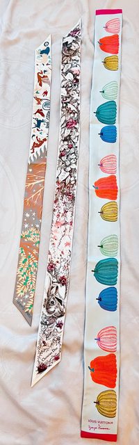 拿Dior和Hermes的長絲巾做對比,LV這條根本龐然大物。