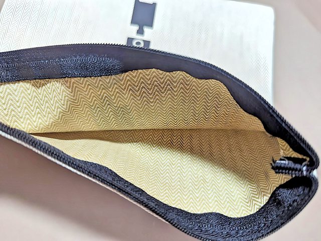 黑色輕巧的拉鍊與袋身的圖騰呼應著
