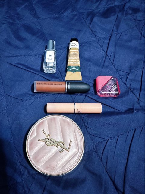在拉鍊袋外面還有一層小內袋。然後補妝的氣墊粉餅、小香水、護唇膏、口紅丟進去還有