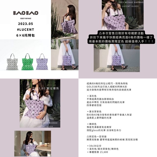 標題[分享] 三宅一生BAOBAO 5月 6格限定色 法棍