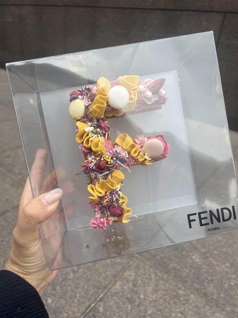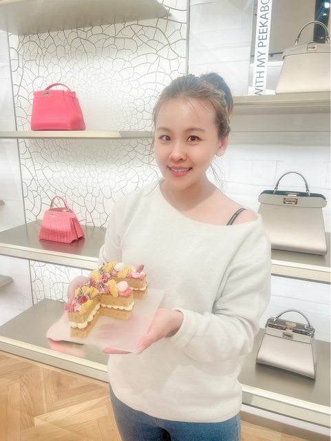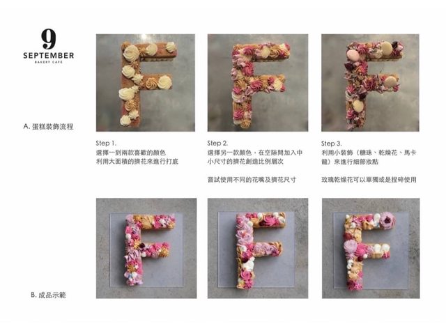 是F字樣的蛋糕,上面自己擠花奶油糖霜跟裝飾,這次是跟September 合作的,蛋糕口味