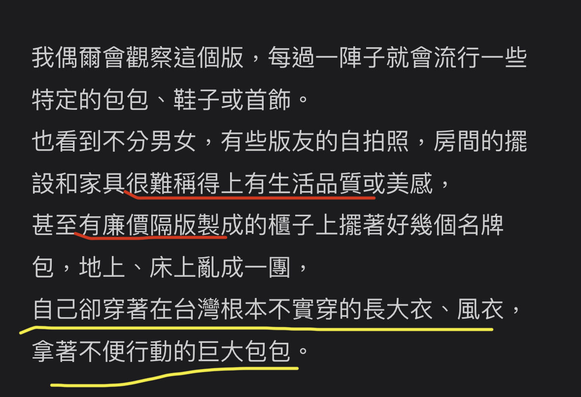 → SARAH12349: (就像沒買包一樣可以在這邊一起討論包)。最後所謂針對 05/12 14:38