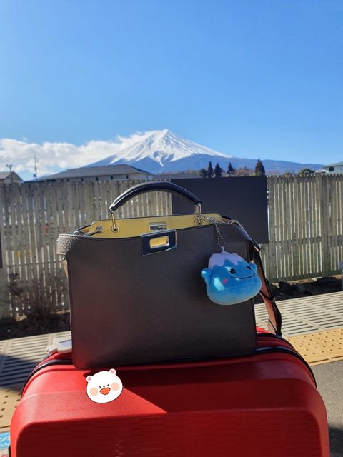 在河口湖時買富士山娃娃吊飾裝飾包上,覺得好可愛唷~ 最近想找片狀的皮革吊飾,交
