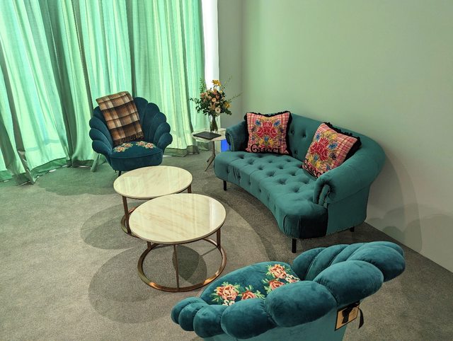 展場中間有活動背板可以拍照留念,