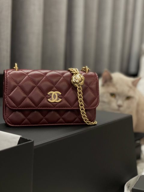因為又撈到一顆勃根地紅山茶花扣手機包。