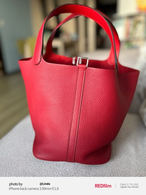 最後一天回國班機很早!7:30我就在機場閒晃,突然看見愛馬仕想說再去問一次,有無任何包?一樣心想沒有就算了!結果櫃哥回我:妳想要什麼?心裡一驚,指了picotin18,他回沒18,只有22,他接著抱出銀扣22石榴紅!我猶豫了一下,本想金剛色,但拿著拿著似乎也配我身高165,價格428000日幣,就沒囉嗦直接買了,也順便選一條Twilly配包。