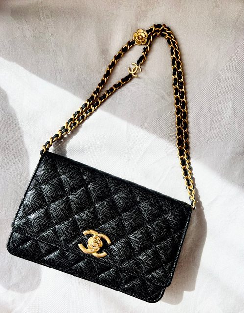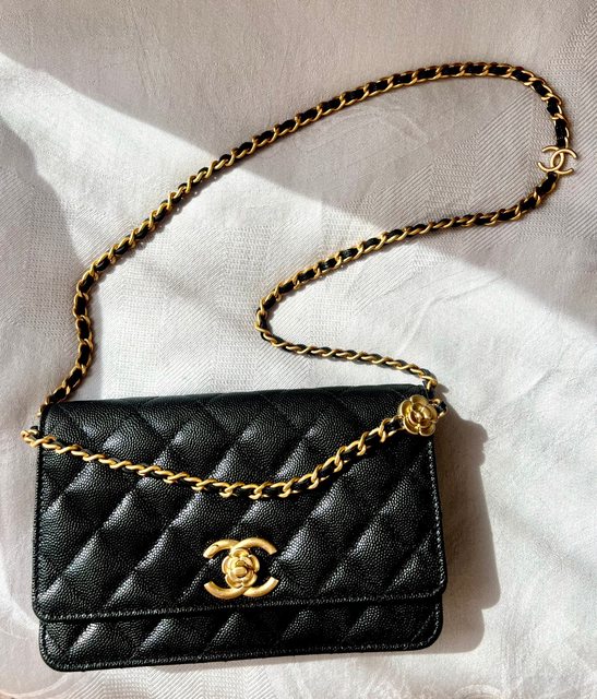 今年春夏23s時我就緊盯過山茶花調節扣的包款,但實品山茶花是一顆比較大的球,沒有
