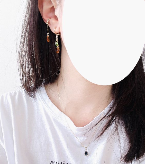 這組夾式耳環特性,讓它可以夾耳垂,也可以卡在上方一點的耳骨。